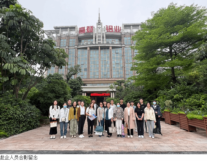 本网讯(经济管理学院)为推动学院高质量发展,实现校企合作促进应用型人才的培养,4月8日下午经济管理学院标准化工程教研室教学团队及学生代表一行人前往广东高登铝业有限公司(以下简称高登铝业)开展合作交流活动,深入企业调研企业发展情况、产学研合作意向,听取标准化工程专业人才培养意见建议,开拓学生实习就业岗位。高登铝业集团执行总裁李婧、副总李海清、人力资源部经理黎健韵、项目管理部经理梁小霞、工业技术部经理刘华珠,经济管理学院标准化工程教研室主任陈晓黎、学科带头人齐虹丽教授、专业负责人魏嫚副教授以及标准化教研室骨干教师和在企实习学生、在校学生代表出席交流会。