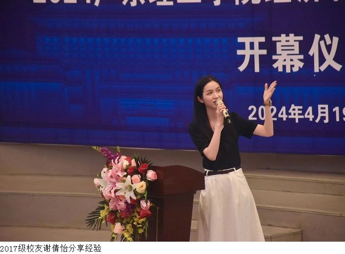 随后,2017级校友谢倩怡,准北京师范大学硕士研究生,分享了她的考研经验,她表示我们应该摆正心态,多向老师学习,同时分享了考研英语和政治的学习方法,鼓励考研学生通过实操稳打稳进,并持之以恒,找到适合自己的方法。并表示希望未来加强与母校的沟通与合作,共同助力母校开启新的辉煌篇章。最后,进入现场提问互动环节。学生们对考研学科学习、时间分配、平台资源利用等问题提出疑问,谢倩怡师姐则逐一进行细致地解答,为学生们分享了更多的宝贵经验。