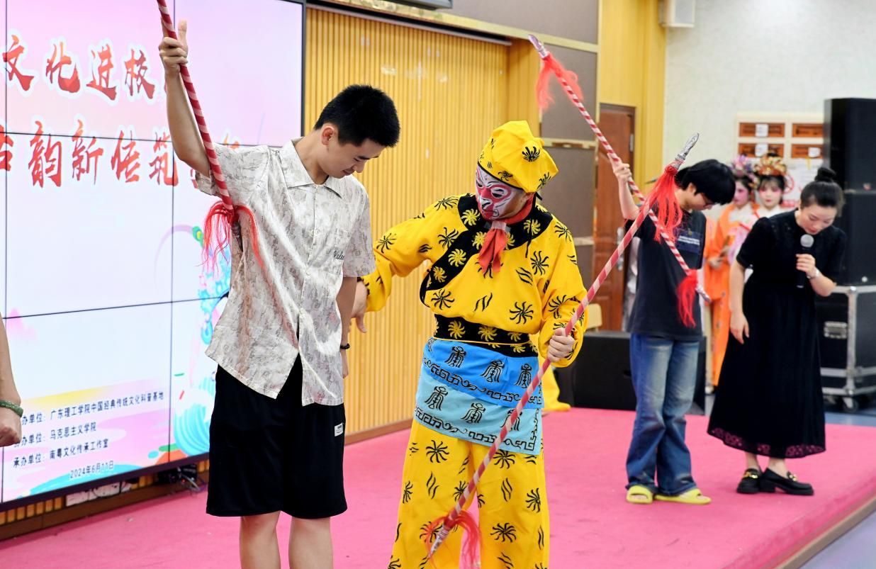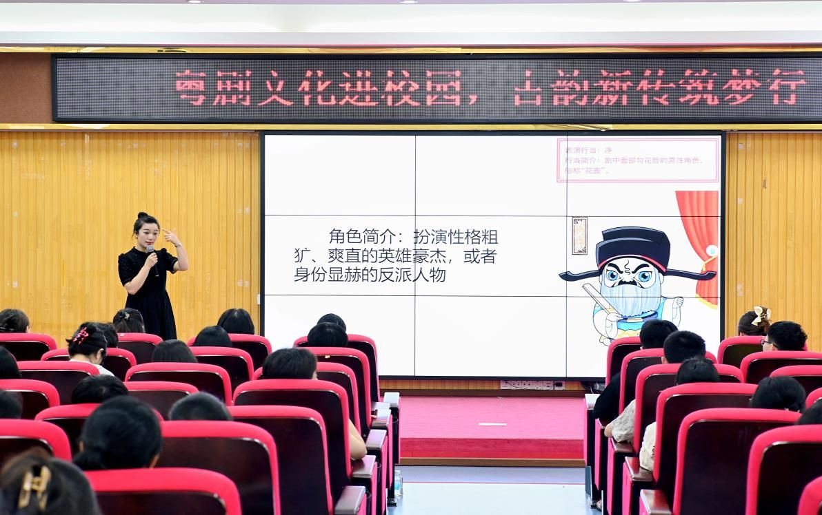 活动现场,来自肇庆市粤剧团的演员们为师生们带来了一场精彩纷呈的粤剧盛宴。广东戏剧家协会会员、肇庆市戏剧家协会理事、优秀青年花旦陆明霞作为主讲人,深入浅出地介绍了粤剧的历史沿革、表演技巧和艺术特色,使师生们对粤剧有了更全面的认识。