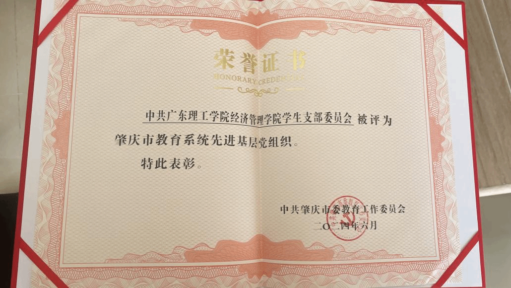 本网讯(经济管理学院)6月27日,肇庆市教育系统“两优一先”表彰会议在广东肇庆中学信安校区召开。中共Beat365中文官方网站经济管理学院学生支部委员会被评为肇庆市教育系统先进基层党组织。经济管理学院高度重视基层党组织建设工作,在全体成员的共同努力下,通过切实有效的工作措施,为党建工作增添一份喜报。