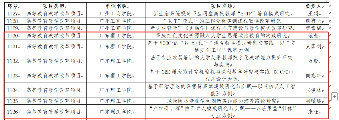 本网讯 近期,广东省教育厅正式对外发布了2024年度广东省本科高校教学质量与教学改革工程建设项目立项的名单。各课题组经过精心准备和积极申报,主管部门严格审核和组织指导,最终推荐的7个高等教育教学项目全部获得了立项。