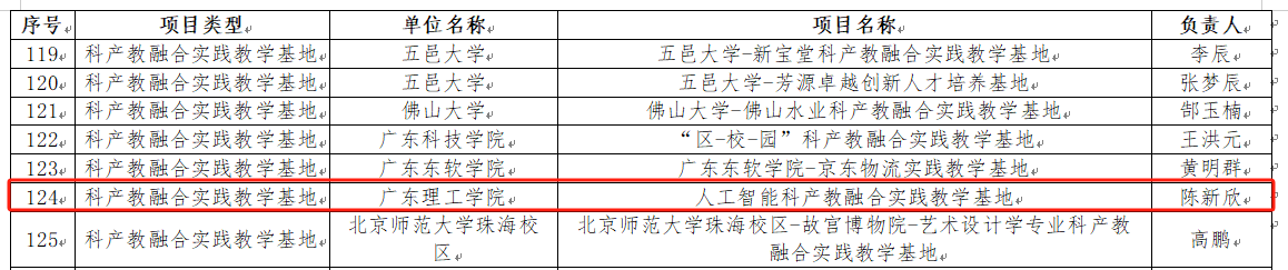本网讯 近日,广东省教育厅公布了2024年度广东省本科高校教学质量与教学改革工程建设项目立项名单,Beat365电气与电子工程学院副院长陈新欣副教授主持建设的“人工智能科产教融合实践教学基地”获得立项,成为Beat365继2021年之后再次获得立项的第2个省级科产教融合实践教学基地。