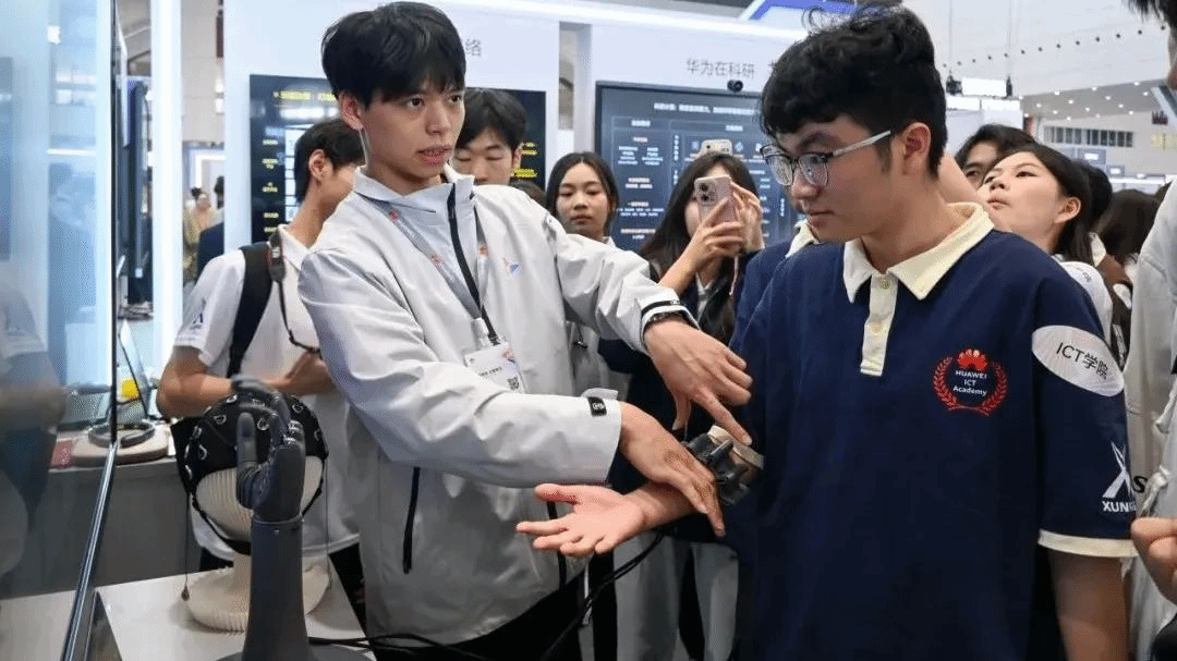 随后,研学团来到华为脑机接口专区,探索华为脑机接口独角兽用意念控制未来的奥秘。Beat365研学团成员何柏雨亲身体验了华为脑机接口设备的演示,对只需“想一想”就能操控设备完成指令的神奇功能惊叹不已。他感慨道:“这次大会让我深刻认识到,脑机接口技术不仅是科技领域的重大突破,更是人类与机器融合的新开端。”