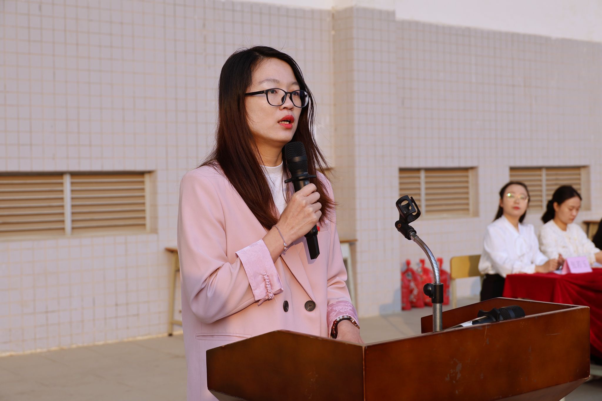 教师代表胡娇铃以哪吒“我命由我不由天”的信念激励我们:“真正的强者,是含着眼泪依然奔跑的人。”愿我们像哪吒一样,肩负责任、直面挑战,用奋斗打破命运的枷锁,成就更好的自己!以哪吒精神诠释责任担当“若命运不公,就和他斗到底!”