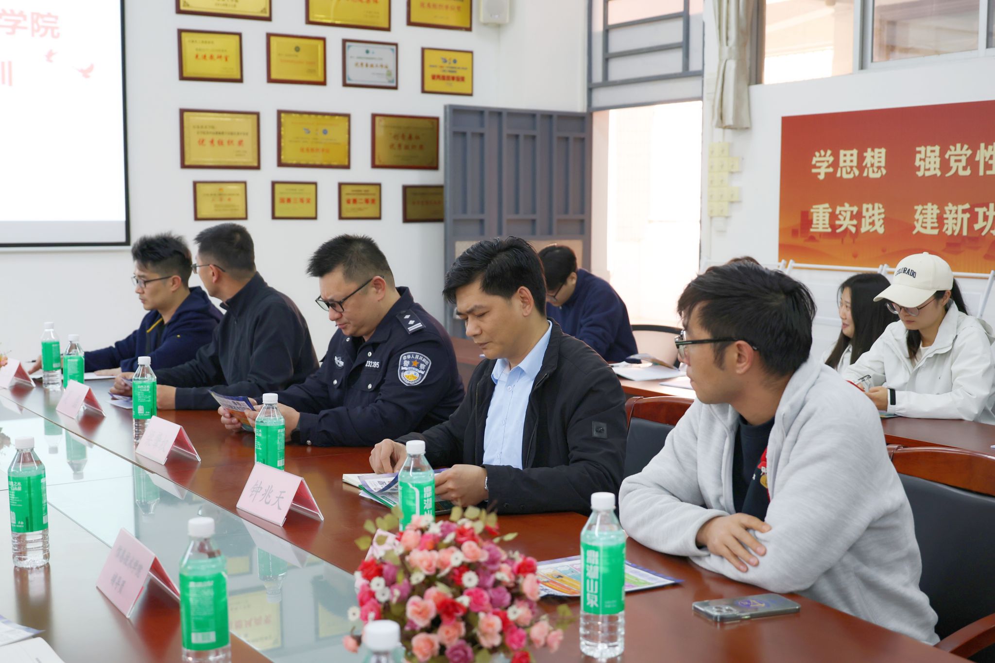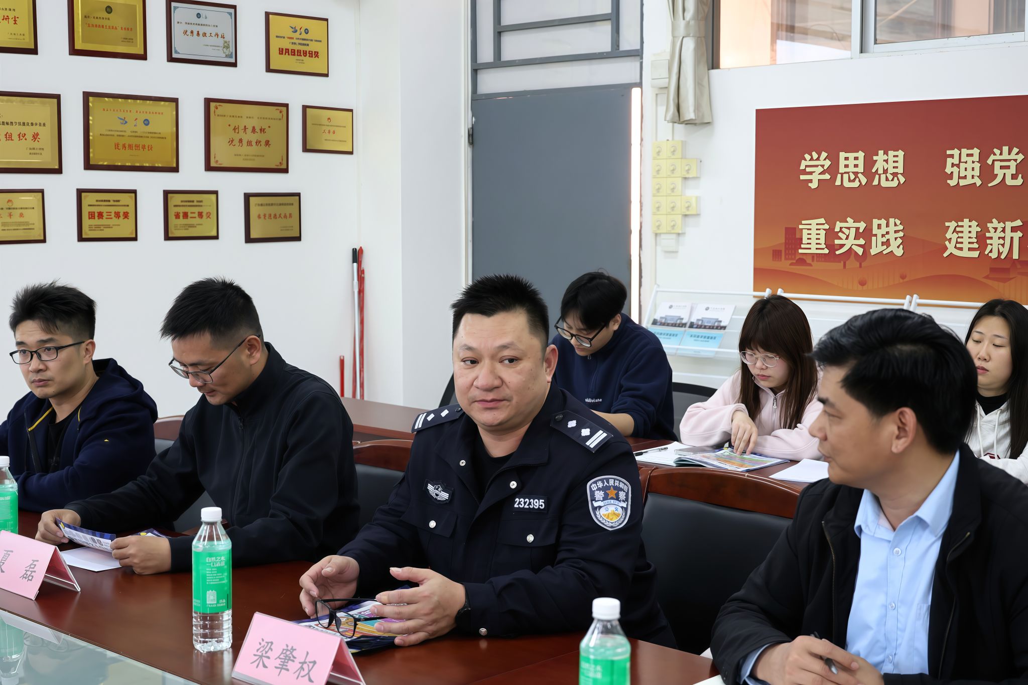 钟书记向全体参会人员介绍梁警官并强调,当前电信诈骗呈现技术升级、精准施骗等特点,校园安全面临严峻挑战。他指出,全体师生需切实提高政治站位,严格落实“三个必须”要求:必须定期召开反诈主题班会、必须全员安装国家反诈中心APP、必须建立异常情况即时报告制度。