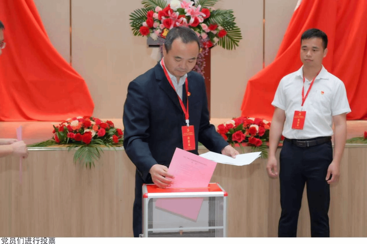 紧接着,大会进入了紧张而有序的第一届党委委员选举环节。按照选举程序,大会首先审议通过了选举办法和监票人、计票人名单。推选了林潘能为总监票人,黄科锜、吴秋萍为监票人,陈钦腾、付龙、梁华成、李卓荣为计票人。师生党员在认真听完候选人的基本情况介绍后,郑重填写选票并依次投票,充分行使自己的民主权利。