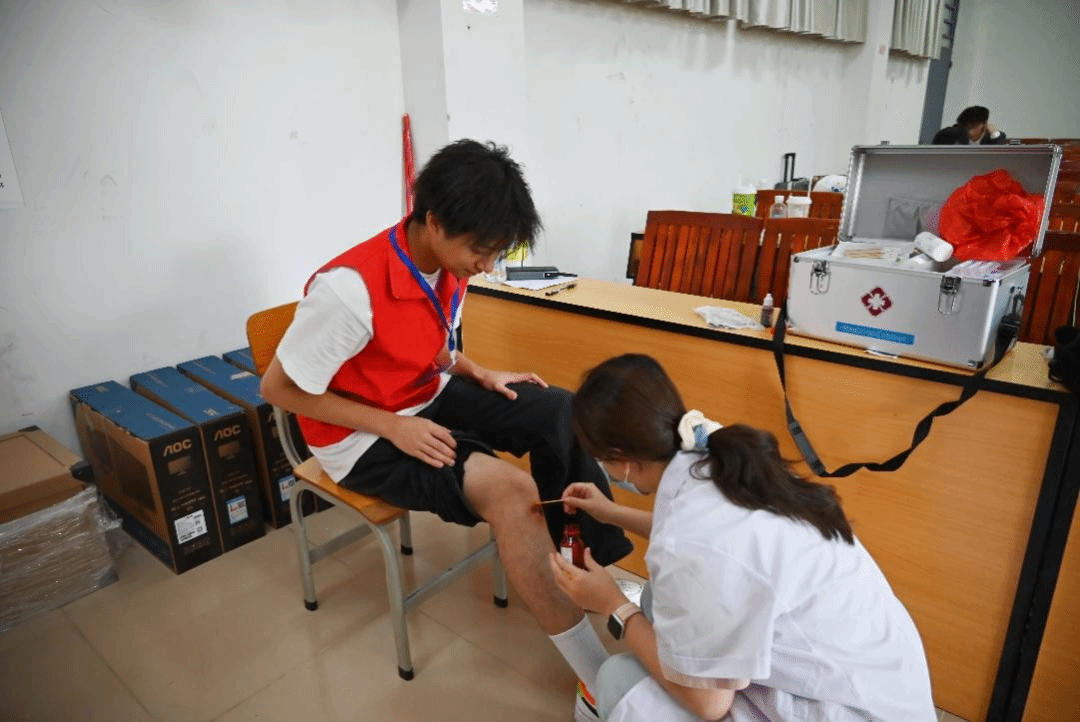 细致关怀,保驾护航!赛事医疗点专业医护人员随时待命,提供及时周到的医疗保障,体现学校以人为本的服务理念。