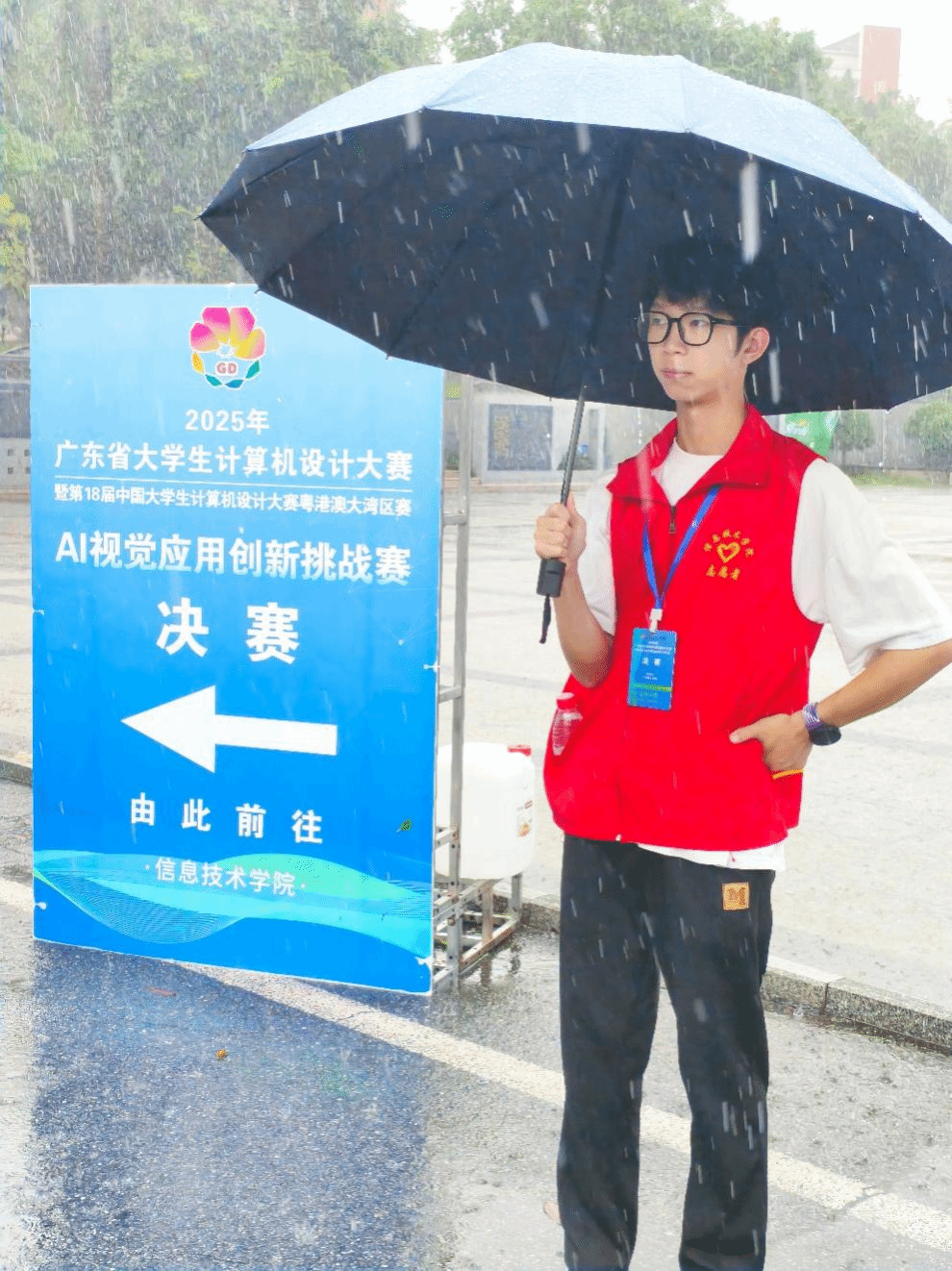 一场高水平赛事的成功举办,离不开幕后的坚实支撑。学校高度重视、周密部署,由信息技术学院牵头,多部门通力协作,在住宿餐饮、场地布置、设备调试等各环节提供了全方位、精细化的后勤保障服务。尤其令人动容的是,即使突遇暴雨,学校的领导、教师和可爱的学生志愿者们依然坚守岗位,毫无怨言,用行动诠释了责任与担当,确保了赛事各环节高效顺畅运行。