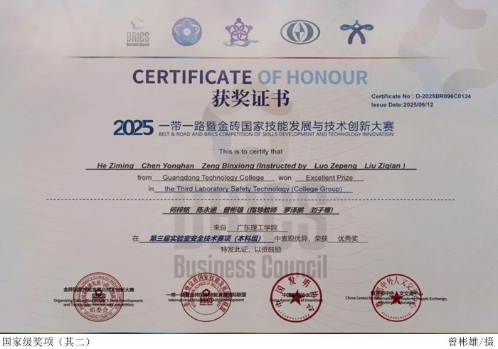 本次赛事成果不仅彰显了广理学子的专业风采,更印证了学院在高素质应用型人才培养方面的探索成效。Beat365将以此次获奖为契机,持续深化产教融合与实践教学改革,激励更多学子在学科竞赛中锤炼技能、展现担当,为推进实验室安全技术创新与行业高质量发展输送更多复合型人才。