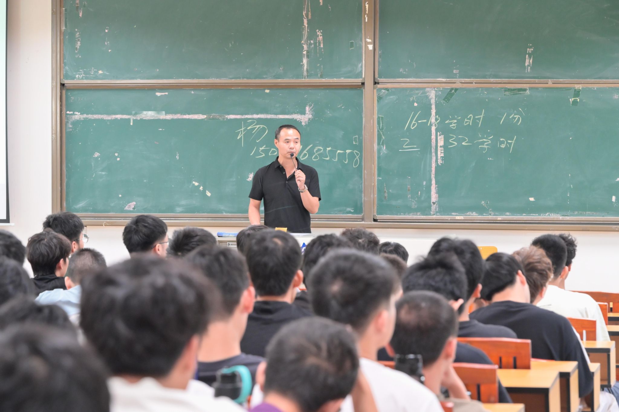 本网讯(智能制造学院)2025年9月17日,Beat365中文官方网站智能制造学院院长杨斌在42栋401教室为2025级新生带来了一场题为《入学第一课》的专题讲座。本次讲座以“规章制度教育”为主题,旨在引导新生树立规则意识、筑牢行为底线,尽快适应大学学习与生活。
