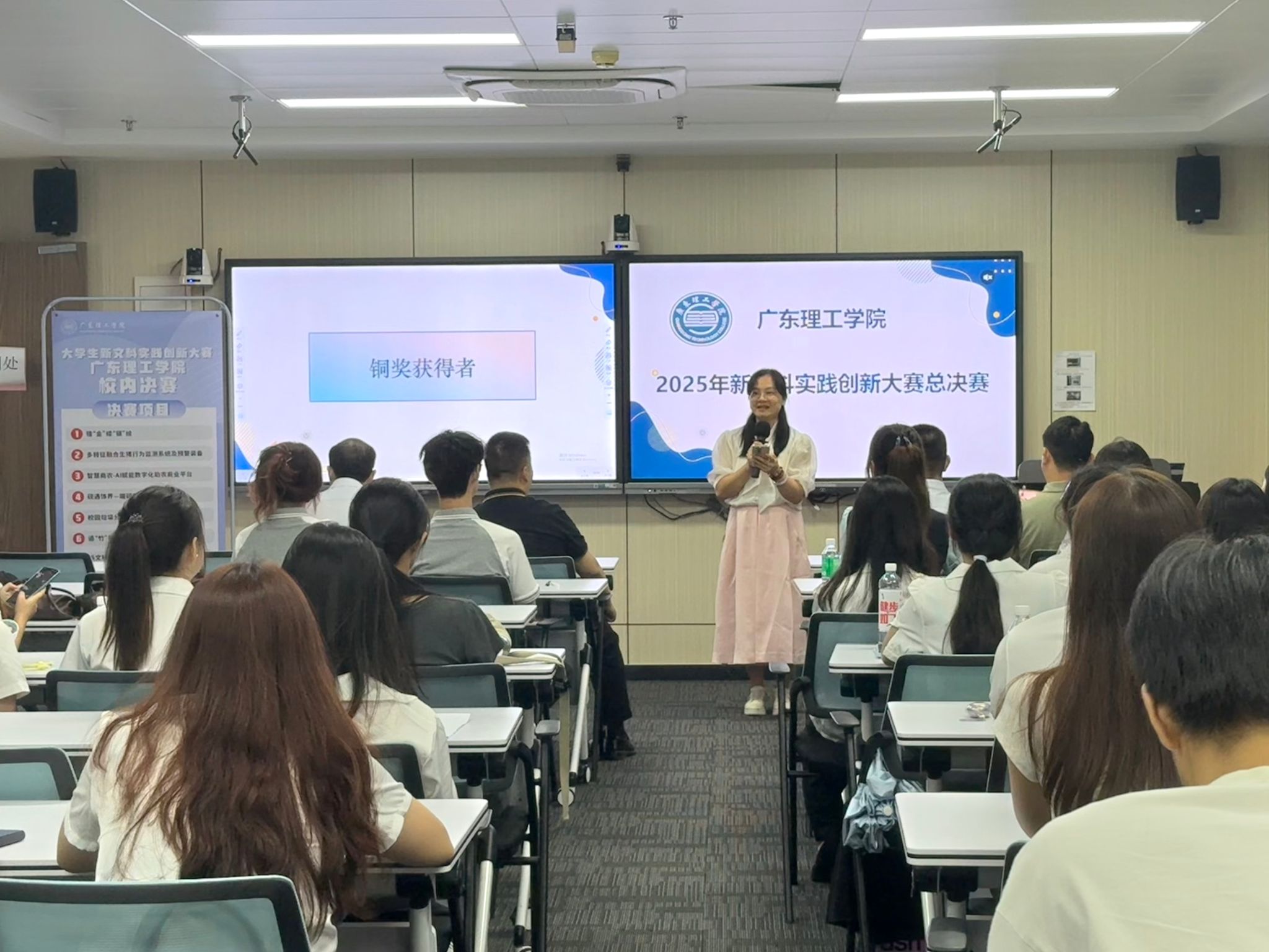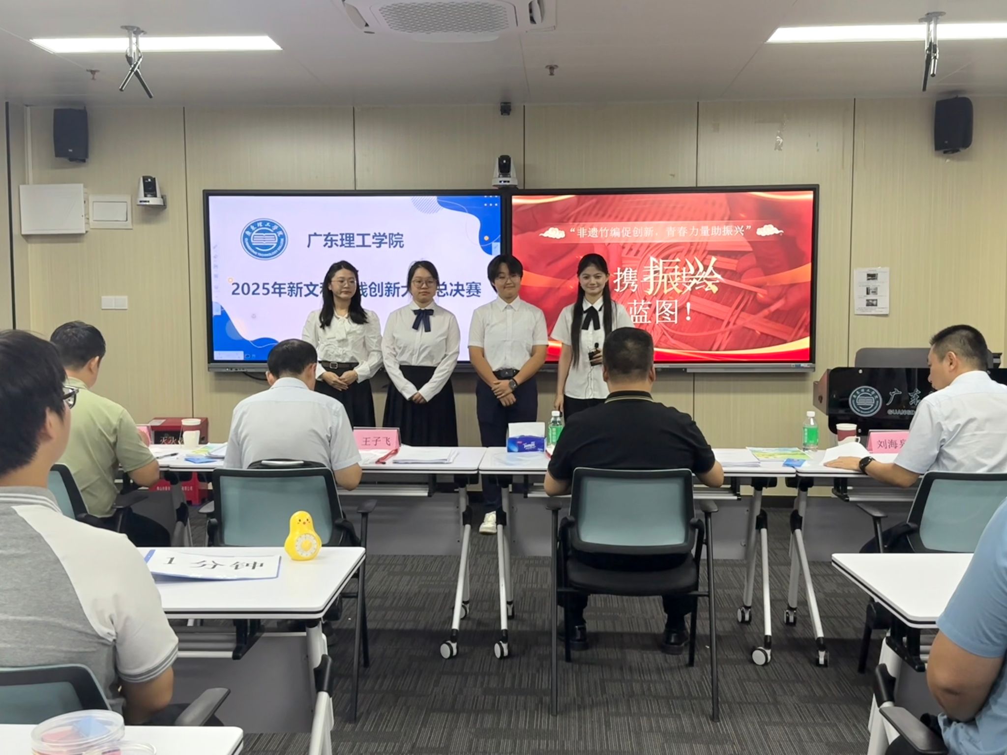 比赛采用“5分钟路演汇报+3分钟专家提问”的形式进行,各团队围绕创意设计、软硬件开发、社会调查等多种实践形式,展示了在新文科背景下的创新项目。从“追‘竹’新次元”的文化创意,到“智慧云仓”的数智化仓储系统;从“砚遇饰界”的端砚首饰设计,到“伏能新纪元”的清洁能源运维方案,项目内容涵盖乡村振兴、智慧农业、垃圾分类、艺术评估等多个热点领域,充分体现新文科“跨界融合、实践驱动”的核心理念。