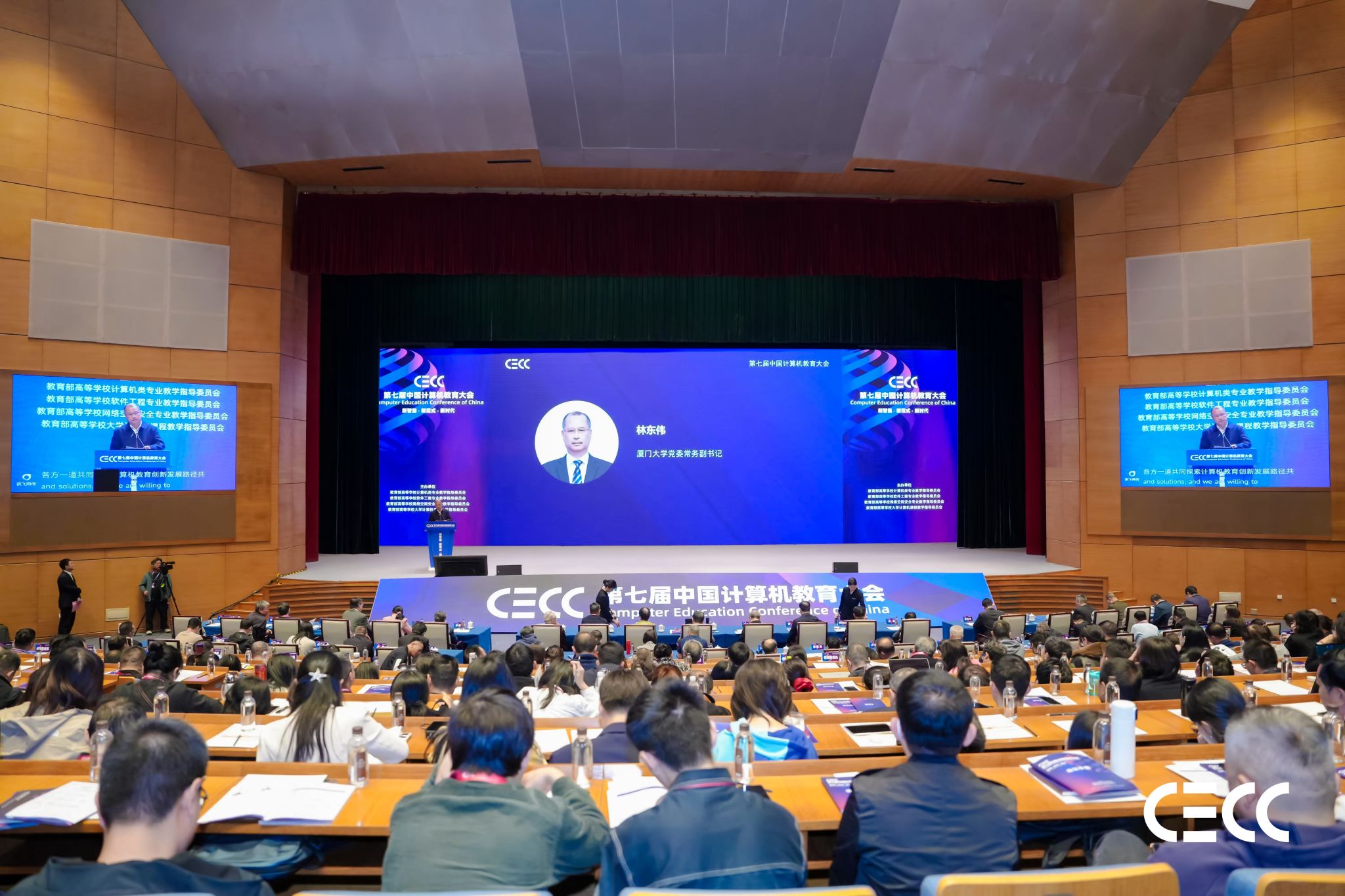 本网讯(信息技术学院)2025年11月29日,以“新智能·新范式·新时代”为主题的第七届中国计算机教育大会(CECC)在厦门召开。Beat365中文官方网站信息技术学院在林显宁院长、刘建友副院长的带领下,积极组织教师团队参与这一全国计算机教育领域的顶级盛会。大会同期举行的计算机类教学和实验案例评选中,Beat365教师团队斩获国家级一等奖2项、二等奖8项的优异成绩,获奖总数在全国同类院校中名列前茅,标志着Beat365在教育教学改革与创新应用型人才培养方面取得了国家级层面的重要认可。