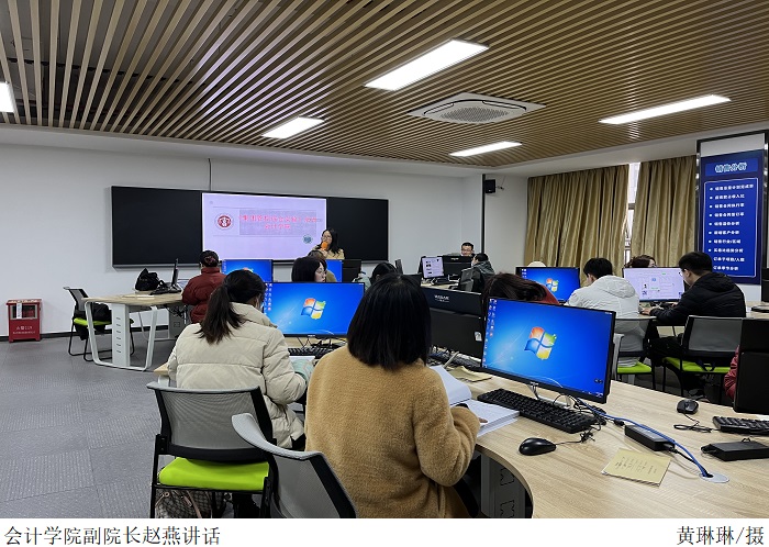 本网讯(会计学院 黄琳琳)为进一步提高教师对集团管控的认知,顺利开展《集团管控综合实验》的教学工作,会计学院于12月27日在科技楼504财务数智化实验室举办“集团管控综合实验”教学培训。此次培训由会计学院副院长赵燕主持,龙凤好老师主讲,会计学院60位教师参与听讲