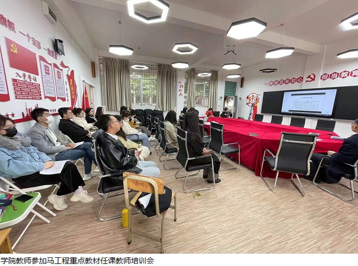 王琳院长在培训前指出,讲好思政课要吃准吃透“马工程”重点教材的主要内容和基本精神,只有对教材的指导思想、理论脉络、框架结构、重点难点问题深刻研究和理解,才能讲出一堂精彩的思政课。希望青年骨干教师能够此次培训契机提高个人教学水平。