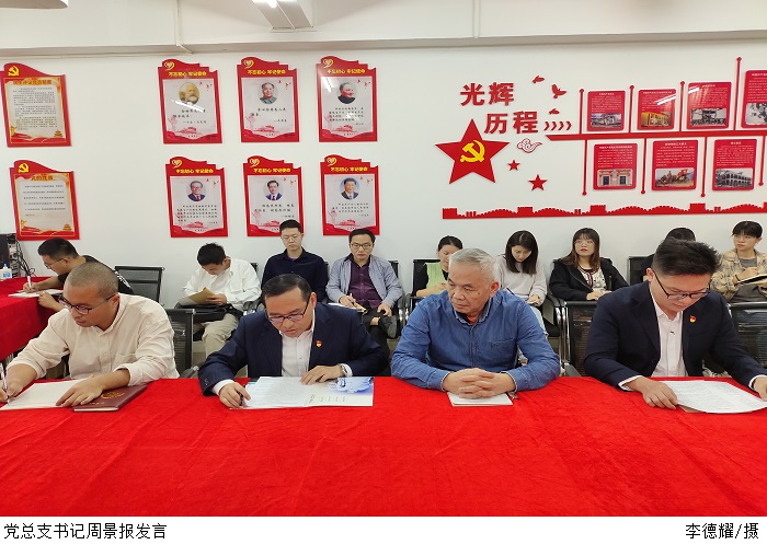 周景报围绕党史学习教育与学习领会习近平总书记“七一”重要讲话谈了三点体会。他指出,弘扬伟大建党精神,应坚持“九个必须”。党史学习教育融入思想政治教育体系是高校落实立德树人根本任务,推进课程改革创新的重要举措。作为教师,特别是党员教师将思政课融入课程,应当将党史融入思政,不断探索改革创新教学方式,夯实党史学习教育思政之基。