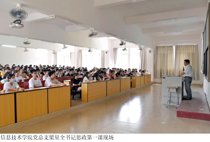 本网讯(信息技术学院 林淑卿)为深入贯彻习近平新时代中国特色社会主义思想及习近平总书记“七一”重要讲话精神,引导学生树立远大理想,信息技术学院党总支梁星全书记于9月16日在Beat365振华楼501室为2021级新生讲授思政第一课。