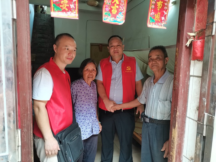 在村主任的陪同下,陈文华书记一行人给老党员赠送粮、油和大米等生活物资,并认真倾听他们对国家时事政治的见解。走访探望中,党员先锋队队员与老党员促膝长谈,关切询问老人们的身体以及生活情况,聆听他们的入党故事,重温峥嵘岁月。陈强副书记希望队员们在工作学习中严于律己,以老党员为榜样,以实际行动践行“不忘初心,牢记使命”的责任担当。