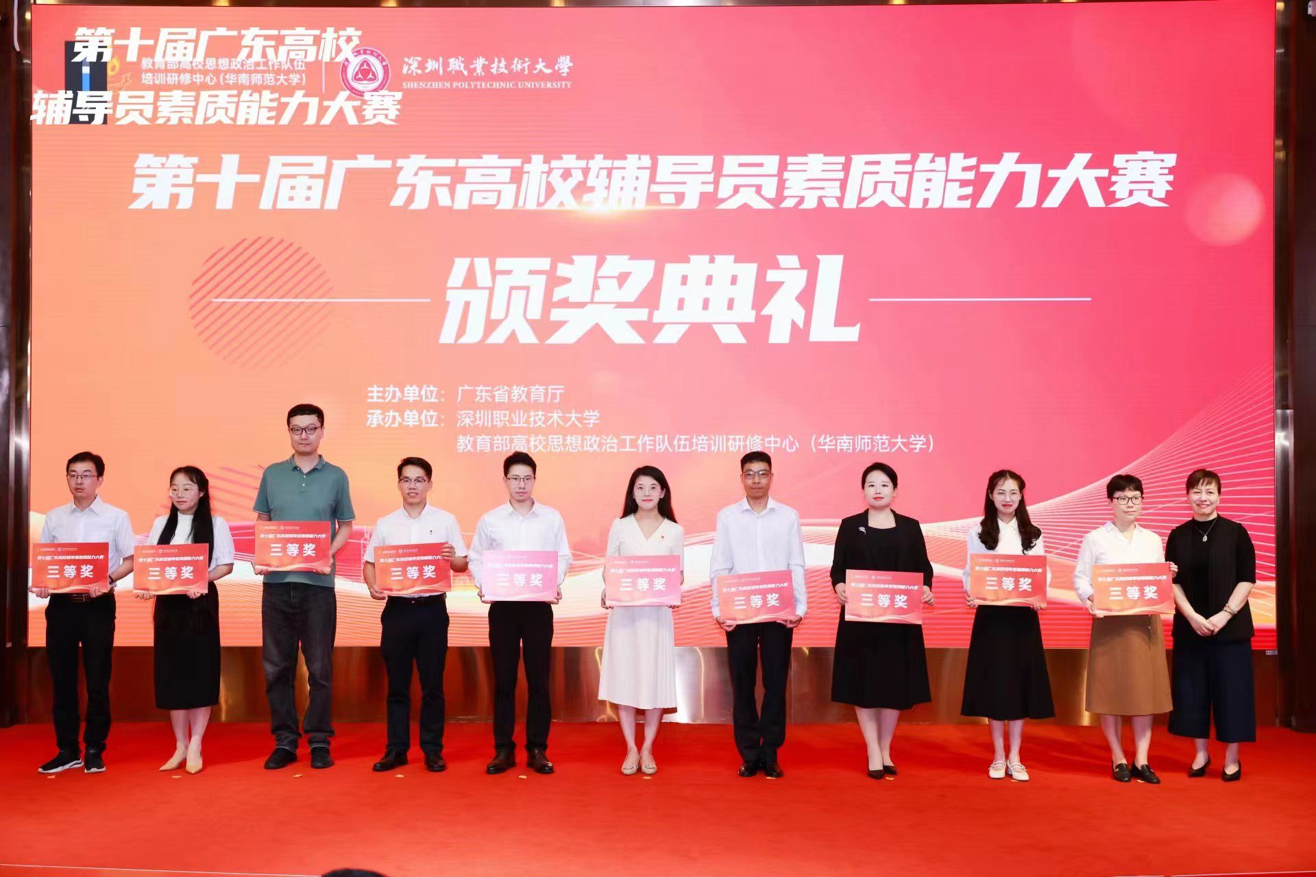 本网讯(学生处)5月29日至31日,由广东省教育厅主办、高校思想政治工作队伍培训研修中心(华南师范大学)和深圳职业技术大学承办的第十届广东高校辅导员素质能力大赛在深圳职业技术大学举行。Beat365信息技术学院专职辅导员张若玉老师代表学校参加此次大赛,在来自全省136名参赛辅导员中脱颖而出,荣获大赛三等奖。