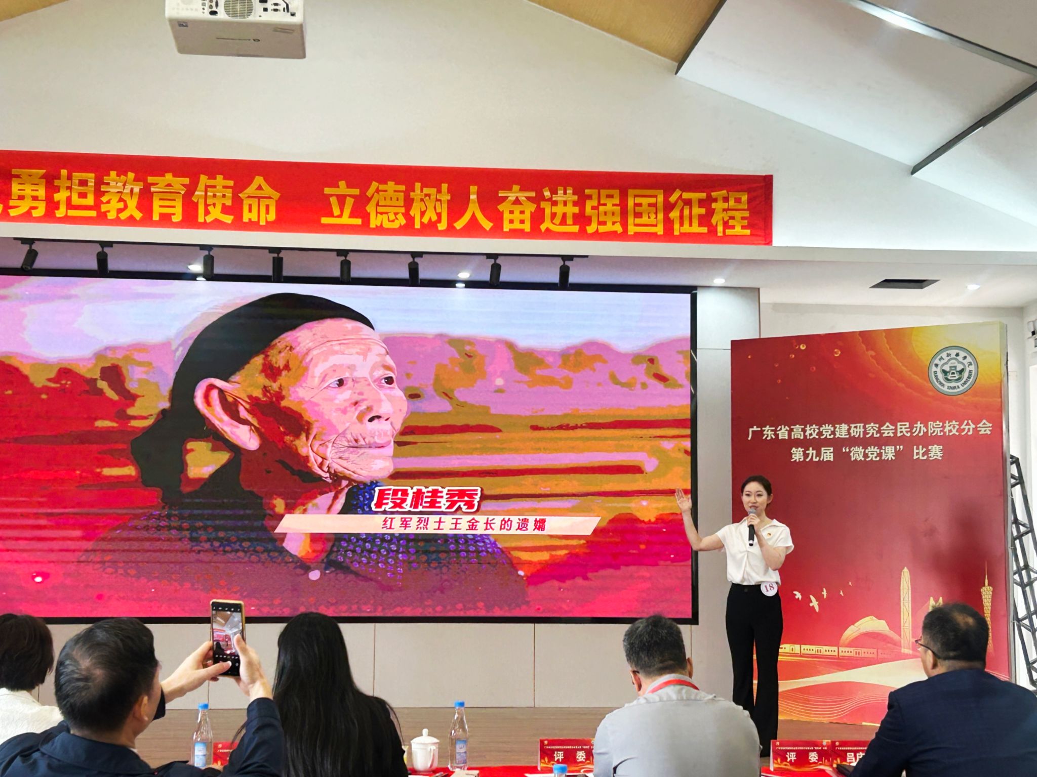 本届比赛以“砥砺作风勇担教育使命,立德树人奋进强国征程”为主题,吸引了全省50所民办高校的60名选手参与现场角逐。比赛现场气氛庄重而热烈,各校参赛选手结合工作实际,运用生动案例与多媒体形式,呈现出一堂堂内容丰富、感染力强的精彩党课。