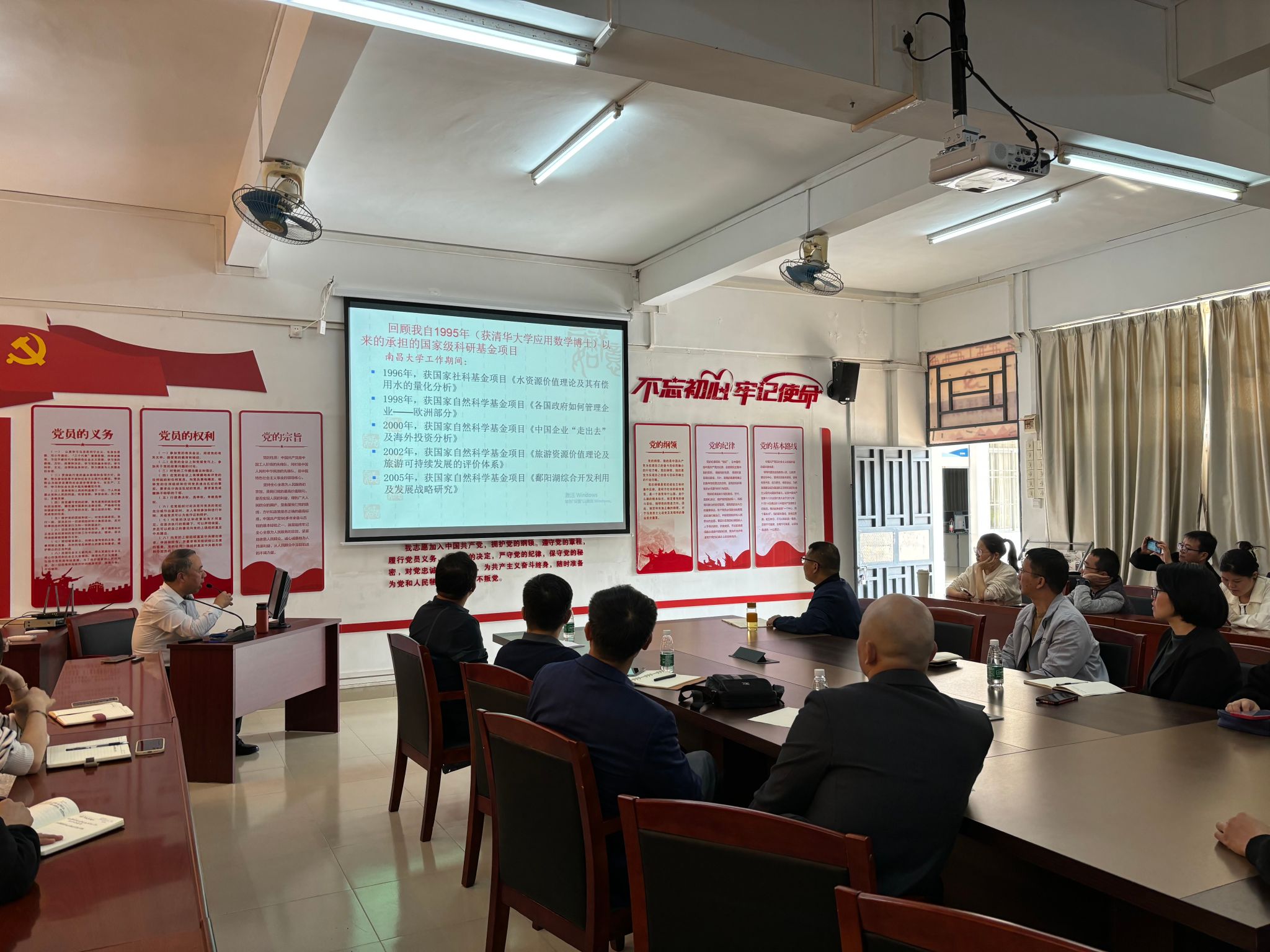 甘教授认为,教学决定生存,科研决定水平,服务决定地位,质量决定兴衰,基金项目申报与科研团队建设是学校本科教学整改再迎评的重要基石。一所大学的教师队伍,能否获得足够多的国家自然科学基金和国家社科基金,是体现大学师资队伍素质和科研水平的重要标志,也是教师个人体现自身能力并实现自身价值的重要途径。他结合自身教学与科研经验,讲解了国家项目基金申报与科研团队建设的注意事项。比如,认真阅读申报指南,研究内容“顶天立地”,研究队伍成员搭配合理。申报材料内容兼具严谨性创新性,厚实团队基础,铺垫前期成果,精心写好材料。同时,科研团队的形成需要学院引导与个人志愿相结合,按照有兴趣、原创性、使命感的原则组建。要明确团队科研方向,团队成员之间通过会读、会议、会晤实现思想的交换与信息共享。