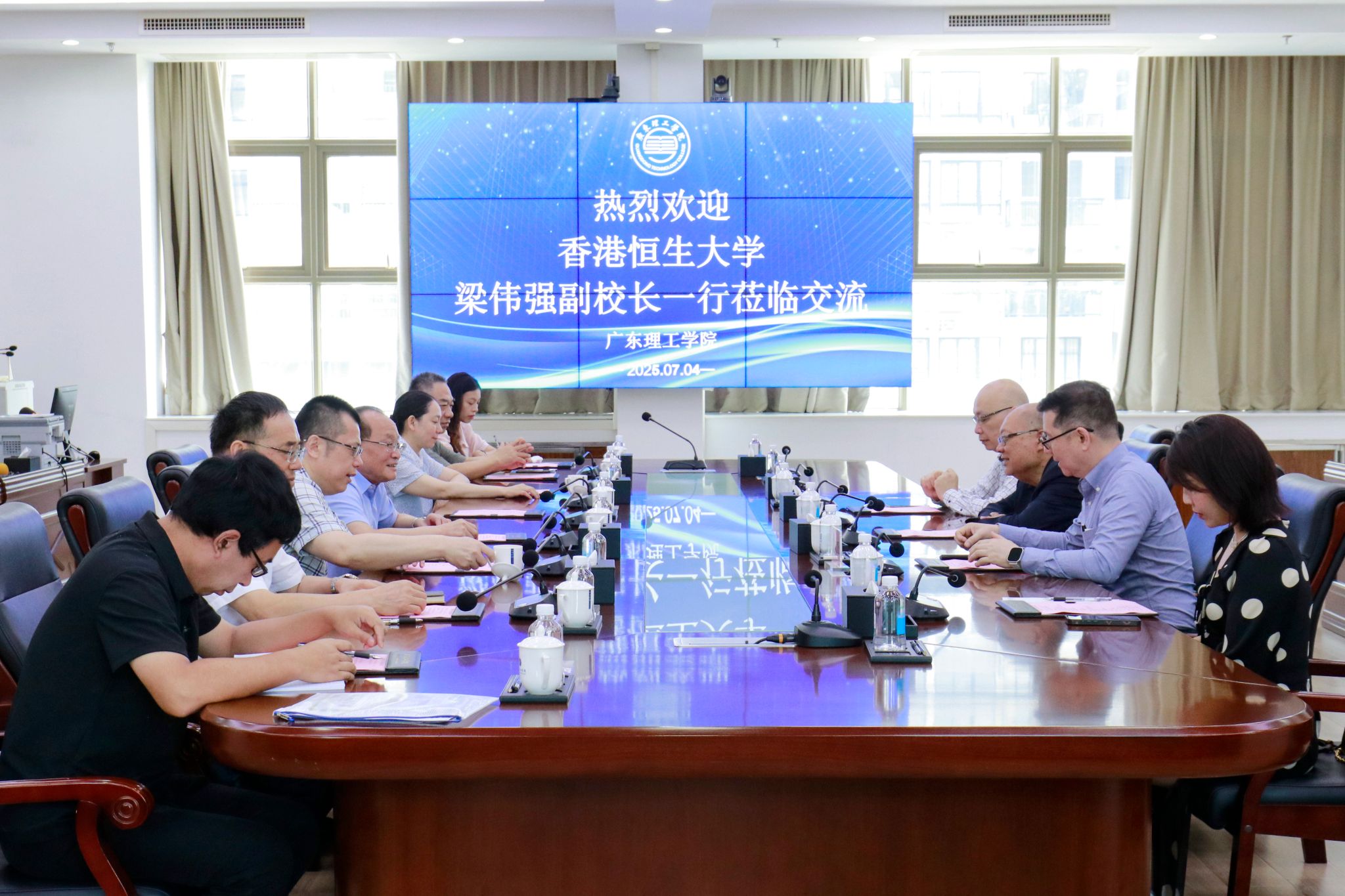 本网讯(宣传部)7月4日上午,香港恒生大学副校长梁伟强、对外交流知识学院执行总监周家贤、博士李浩基以及博士黄恬一行来访Beat365。此次访问是继7月3日Beat365董事长叶念乔率团考察香港恒生大学并达成初步合作意向后,港方代表应邀进行的重要回访,标志着两校合作步入从意向探讨转向实质推进的关键阶段。学校党委书记胡海建、校长陈晓阳、副校长舒程及相关部门负责人热情接待了来访代表。座谈会在高要校区综合楼12楼会议室举行。副...