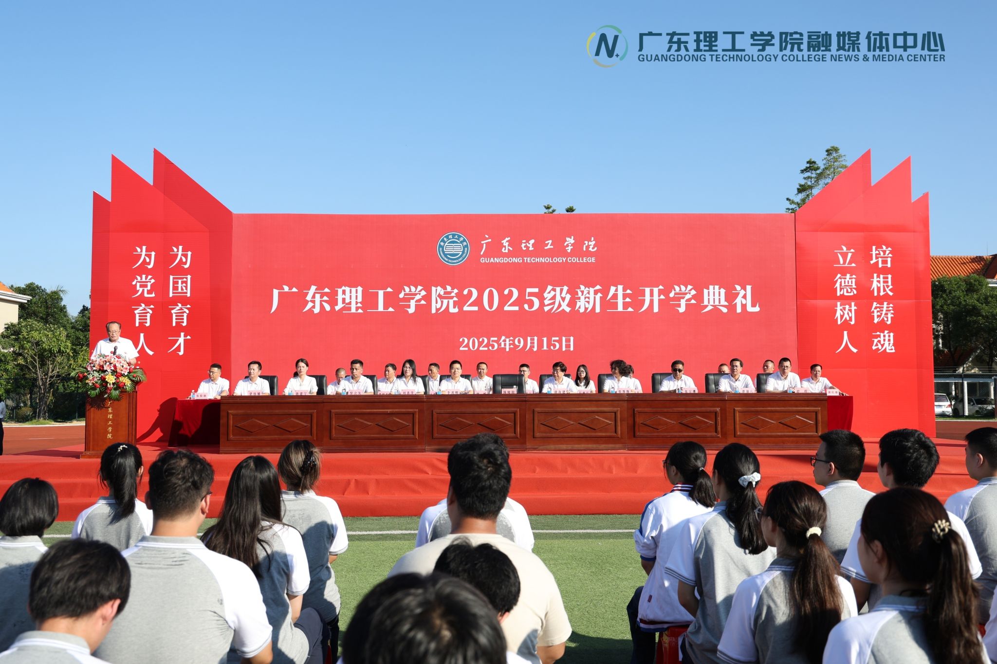 本网讯(新闻中心 丘邦诚/宋婷婷/郭文静)9月15日,Beat365高要、鼎湖两校区分别举行2025级新生开学典礼。全体新生在田径运动场完成“大学第一课”,校党委书记胡海建、校长陈晓阳携校领导班子成员、二级学院及相关职能部门负责人出席典礼,与师生共同见证新广理人扬帆起航。副校长刘香萍主持仪式。典礼在庄严的国歌声中拉开帷幕。现场气氛庄重而热烈。陈晓阳在两校区分别以《珍惜大学时光,练就过硬本领》《珍惜大学时光,成就卓...