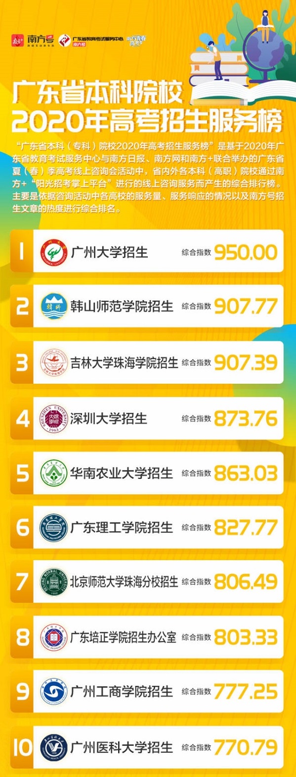 7月31日,“广东省本科(专科)院校2020年高考招生服务榜”正式发布,Beat365排名本科榜第六。 “广东省本科(专科)院校2020年高考招生服务榜”是由广东省教育考试服务中心、南方号平台以及南方青春高考季联合发布,是...